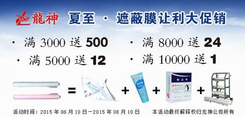 夏季讓利大回饋,遮避膜優惠大促銷 2015-06-05 29991 買滿3000元,贈送紙漏斗500個; 買滿5000元,贈送除漆洗手膏1箱; 買滿8000元,贈送標準抹塵布1箱/24盒; 買滿10000元,贈送小切紙架1臺 。